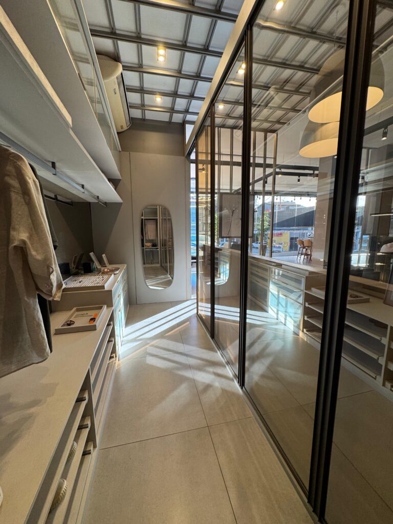 Para elaborarmos o projeto, agendamos uma visita à nossa loja, onde mostramos o showroom com todos os acabamentos e acessórios, além de conversarmos sobre as necessidades para os espaços que desejam planejar. Através da planta utilizamos as medidas para criar o projeto; caso não tenha a planta, agendamos a medição. Após essa etapa, marcamos a apresentação do projeto e orçamento para garantirmos a melhor negociação.
